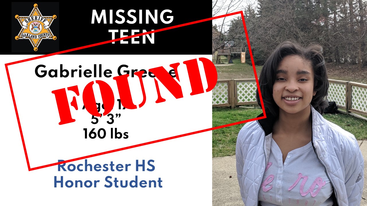 Anyone who may have seen Gabrielle or knows where she is should call the Sheriff’s Office Rochester Hills substation at 248-537-3530 or Sgt. James Morgan at 248-537-3509.